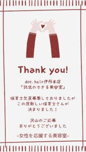 〈保育士採用決まりました!〉dot.hair 伊丹本店 託児のできる美容室