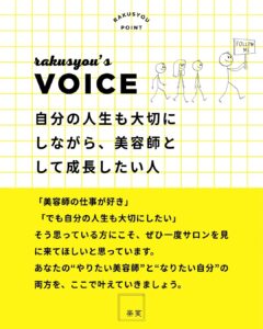 あなたの“やりたい美容師”と“なりたい自分”の両方を、ここで叶えていきましょう。