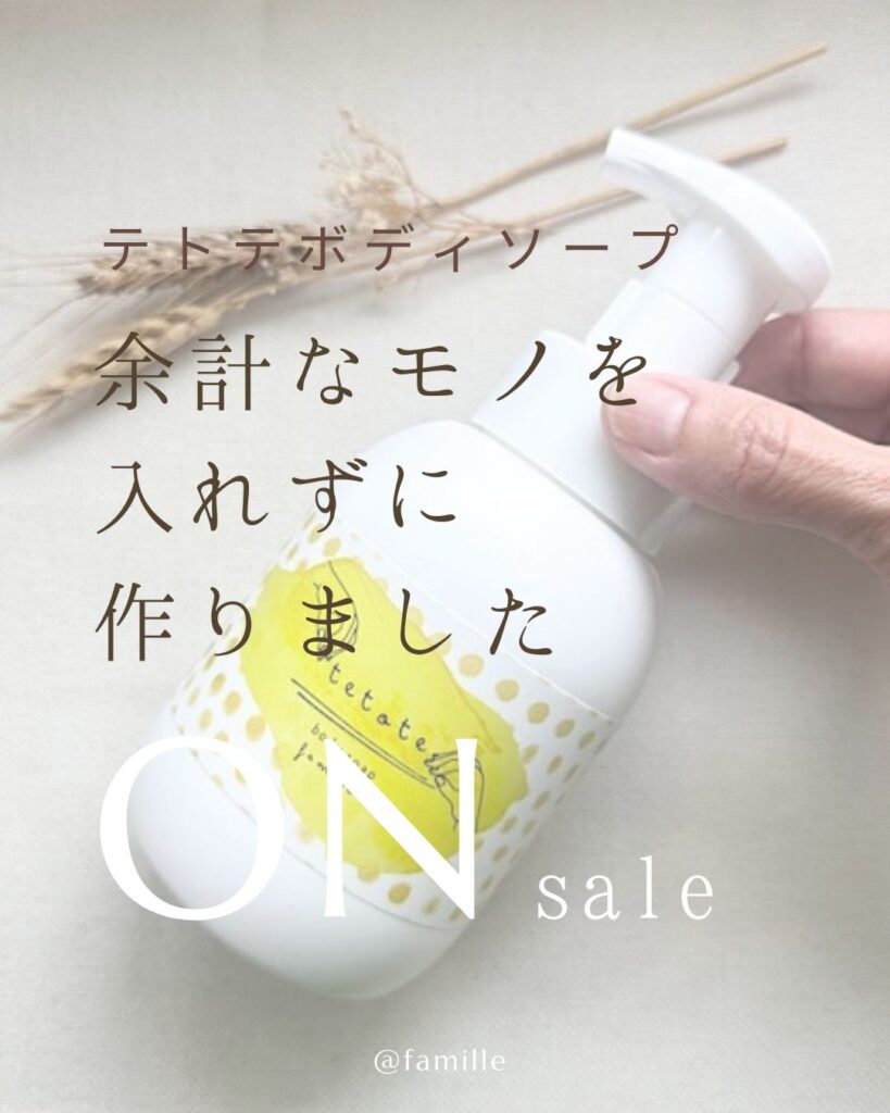 ≪teote テトテボディソープ 発売中≫ 親子で使える商品を展開中の familleファミーユより 新しく 泡ボディソープが発売されました ・ポンプで泡で出てくるソープ ・香り オレンジとベ...